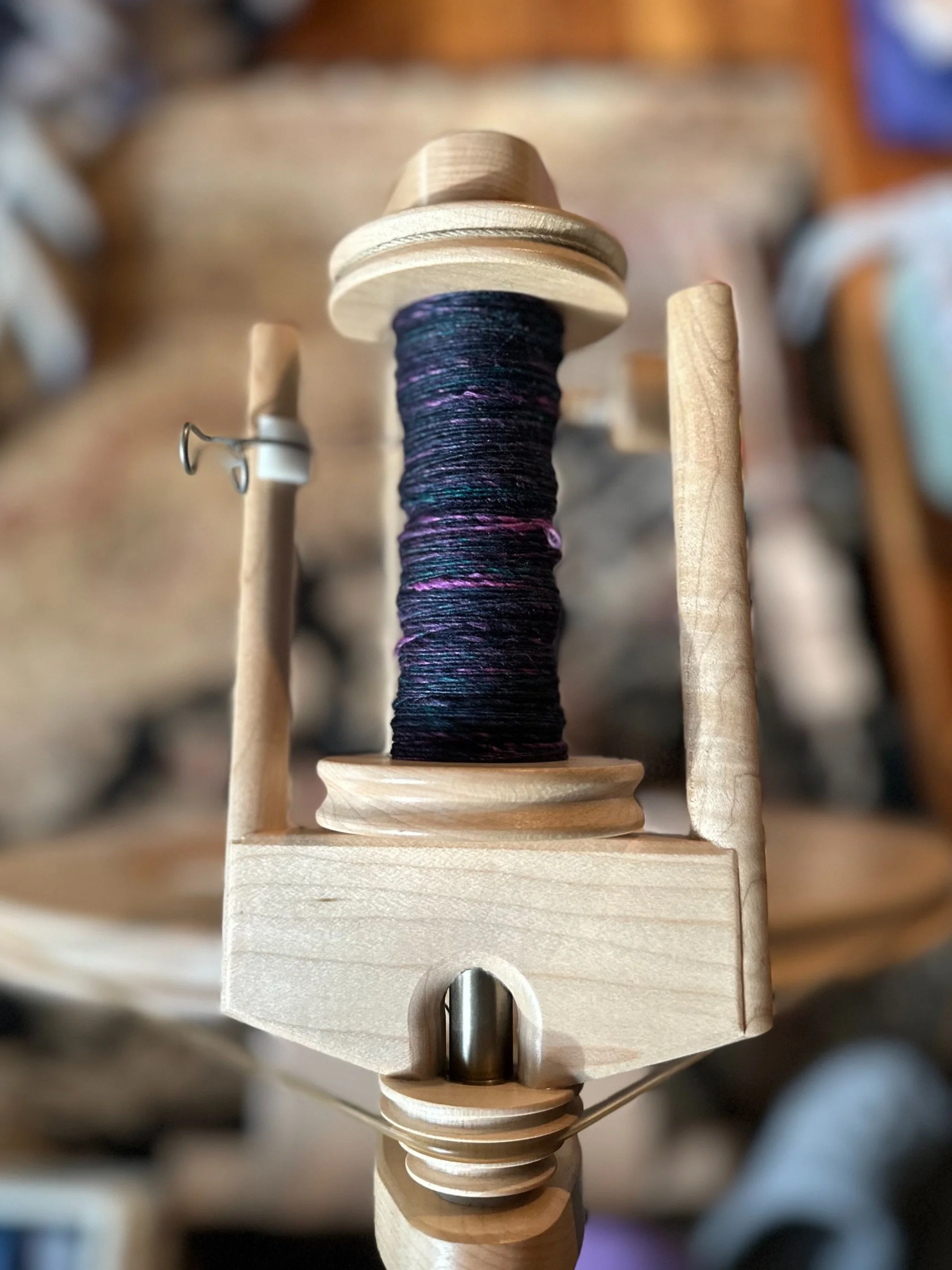 With my preparation complete, including some newly 3D-printed jumbo bobbins, I was ready to hit the ground running at Noon. I began spinning some of my favorite fibers filling all of my standard bobbins with singles before moving onto plying. It took several days to get to the plying stage, but I was determined and excited!